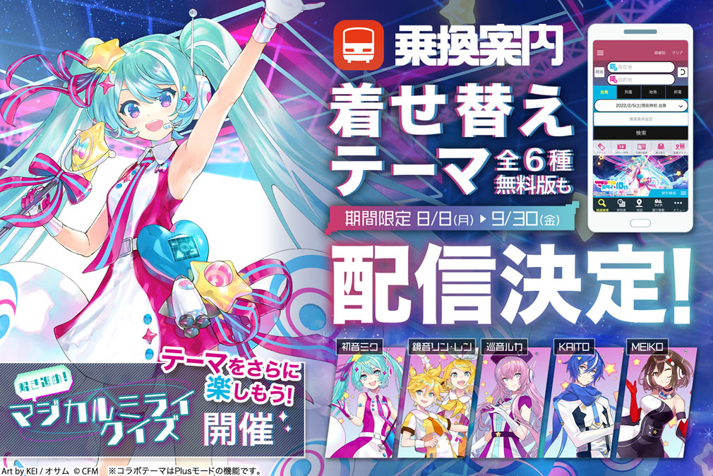 これひとつでもう乗換迷わない!「ジョルダン乗換案内」で今年もコラボ! ピアプロキャラクターズたちの着せ替えテーマを適用して、「解き進め!マジカルミライクイズ」を遊べます! 会場でクイズに答えて、今回だけの記念スマホ壁紙をゲットしましょう!