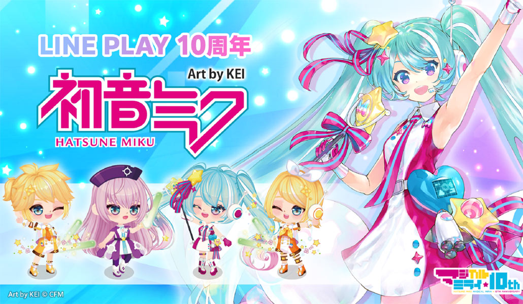 アバターコミュニケーションアプリ「LINE プレイ」の10周年を記念して実施される本コラボでは「マジカルミライ 10th」テーマの新作ガチャが登場!さらに「フューチャー・イヴ」をはじめとする初音ミクの人気楽曲で遊べるリズムゲームにも挑戦できます!