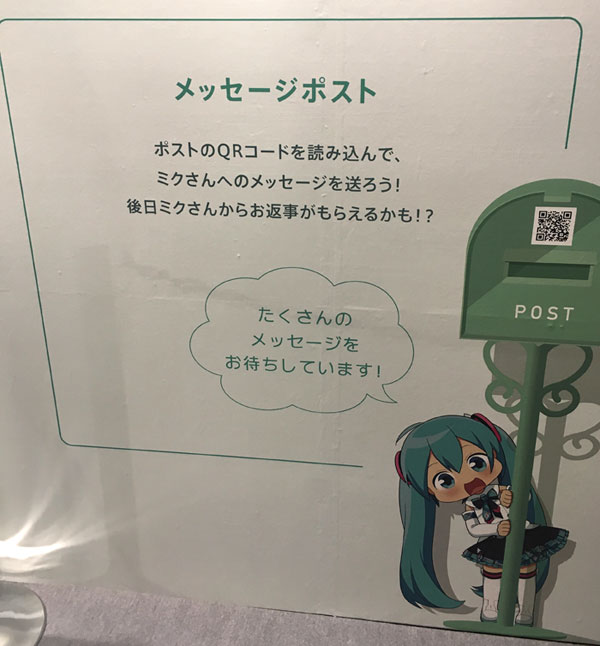 企画展内の「みんなでつくるミクの部屋」にあるポストからミクさんへのメッセージを送ろう!後日ミクさんからお返事がもらえるかも!?
