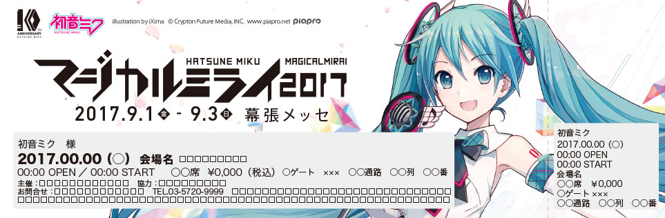 初音ミク「マジカルミライ 2017」ライブ、企画展、企画展ステージのチケット一般販売情報が追加になりました!2017年8月5日(土)10:00から販売開始!詳細は各受付ページをご確認ください!